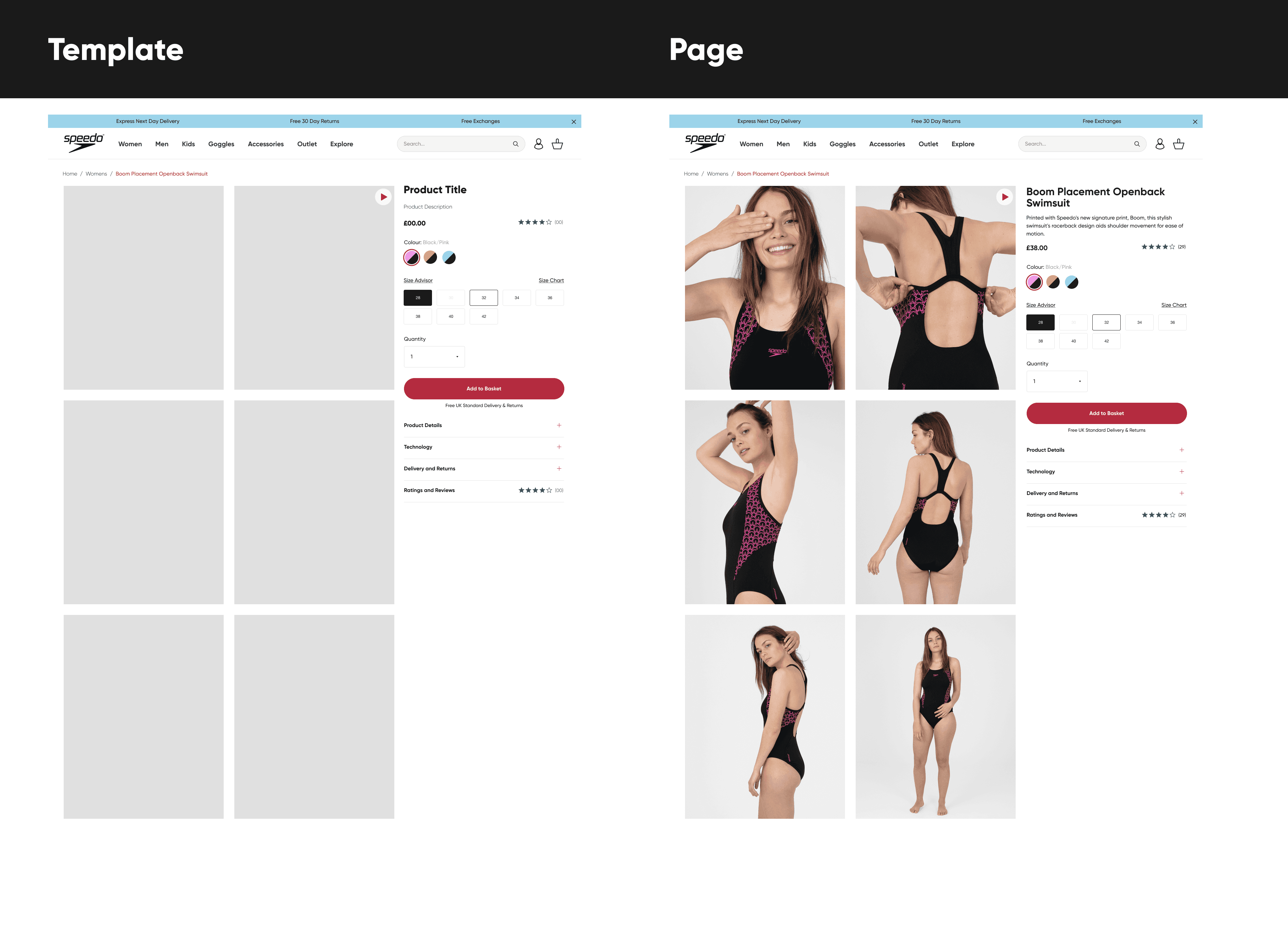 As a product designer on the e-commerce team of Pentland Brands, I was given the brief of leading the initial UI design for a new speedo.com website. Research found the the old site did not reflect the premium asthetic that speedo wanted to convey - while user testing revealed usability issues scattered throughout the site.